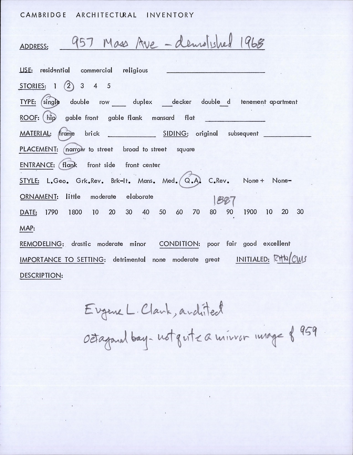 - Cambridge Historical Commission, Digital Architectural Survey and History.