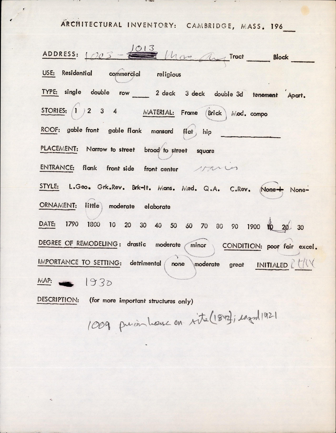 1003-1013 Massachusetts Ave - Architectural Inventory Form