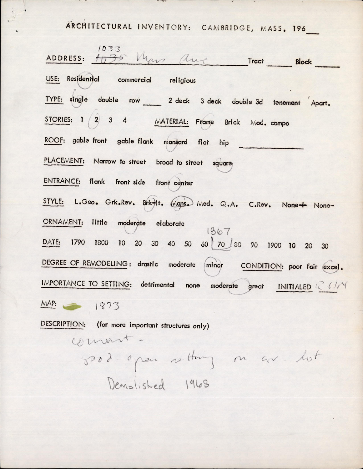 1033 Massachusetts Ave - Architectural Inventory Form