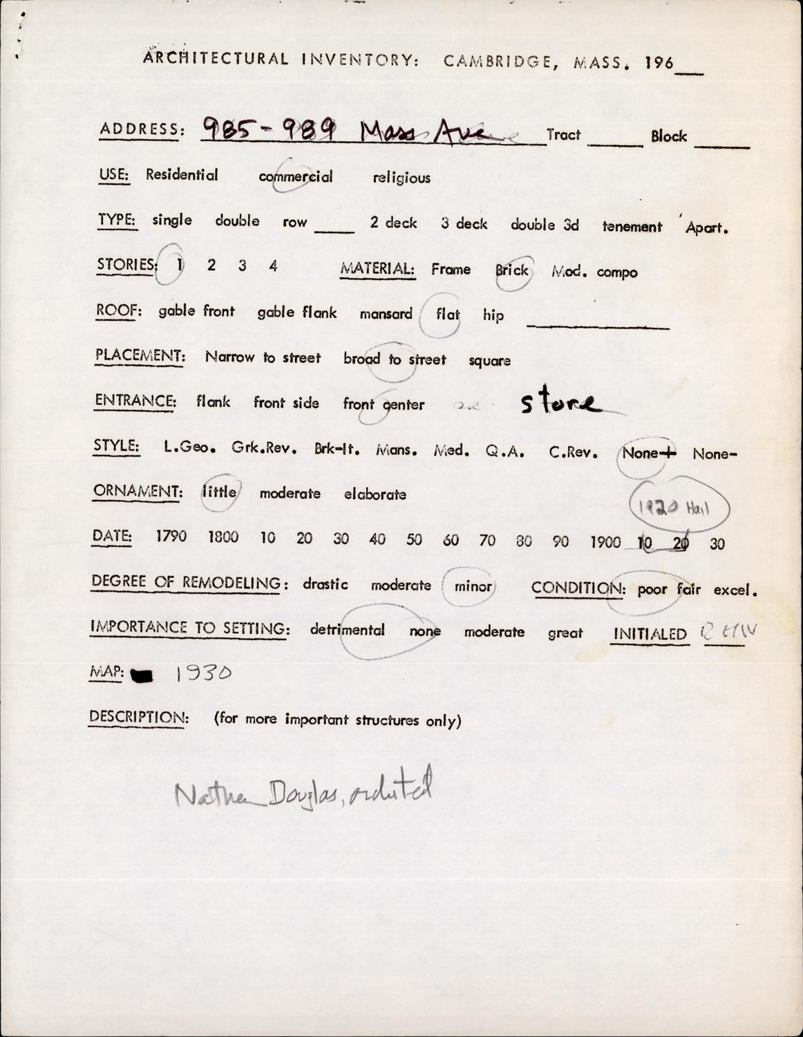 985-989 Massachusetts Ave - Architectural Inventory Form