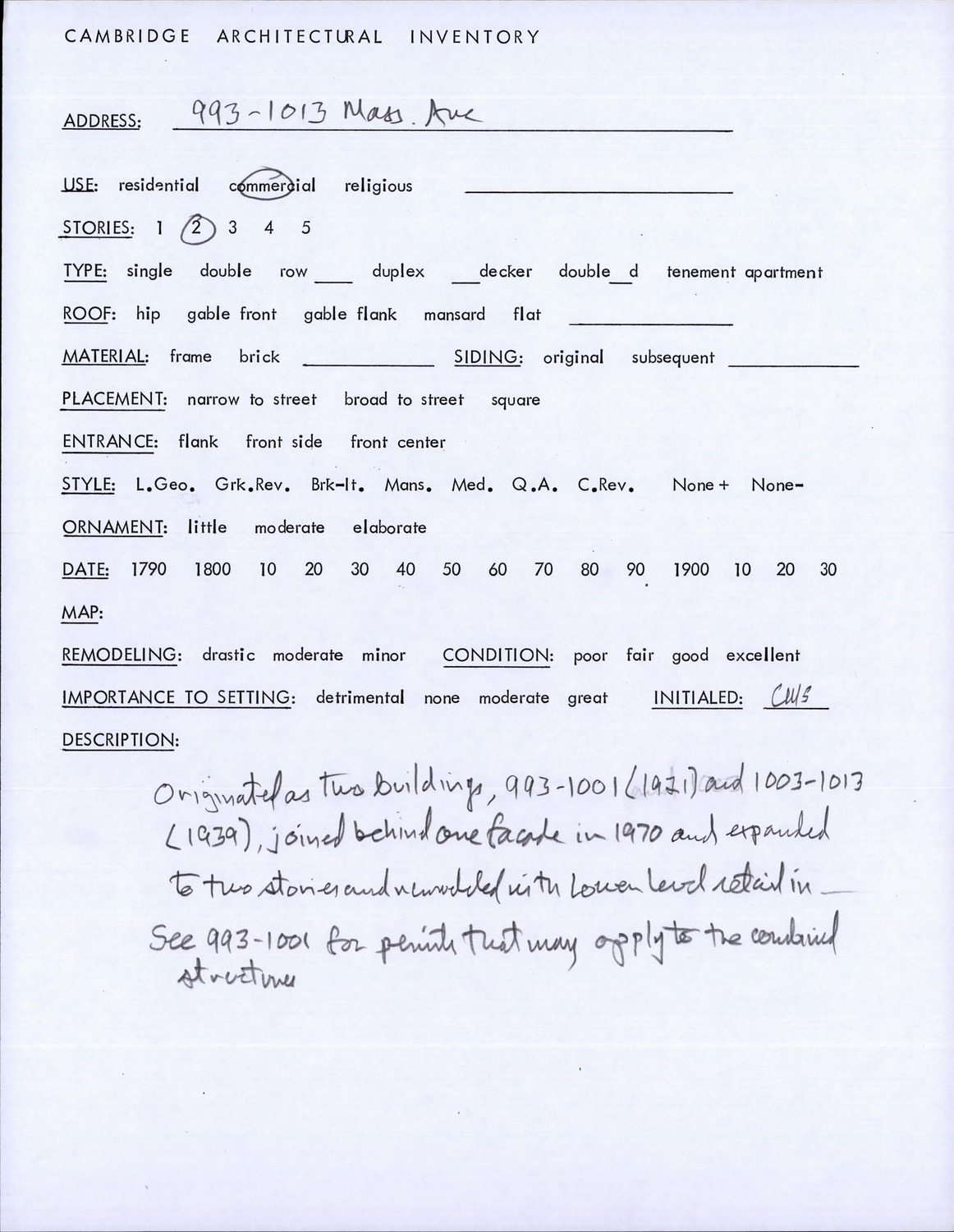 993-1013 Massachusetts Ave - Architectural Inventory Form