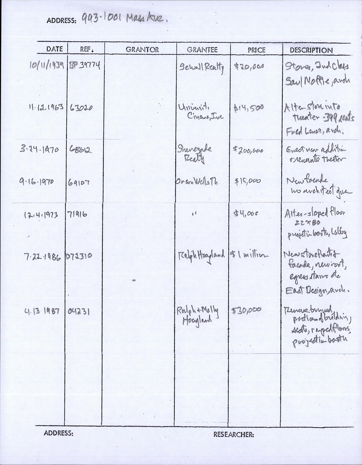 993-1013 Massachusetts Ave - Research Form