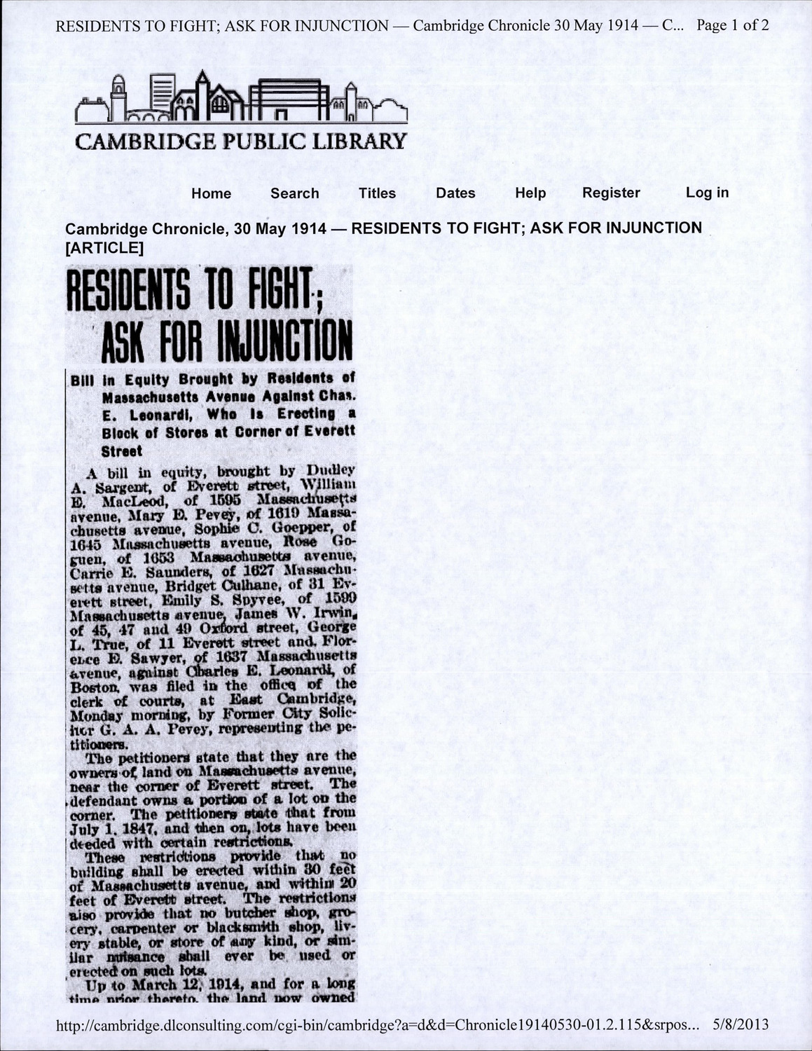 - Cambridge Historical Commission, Digital Architectural Survey and History.