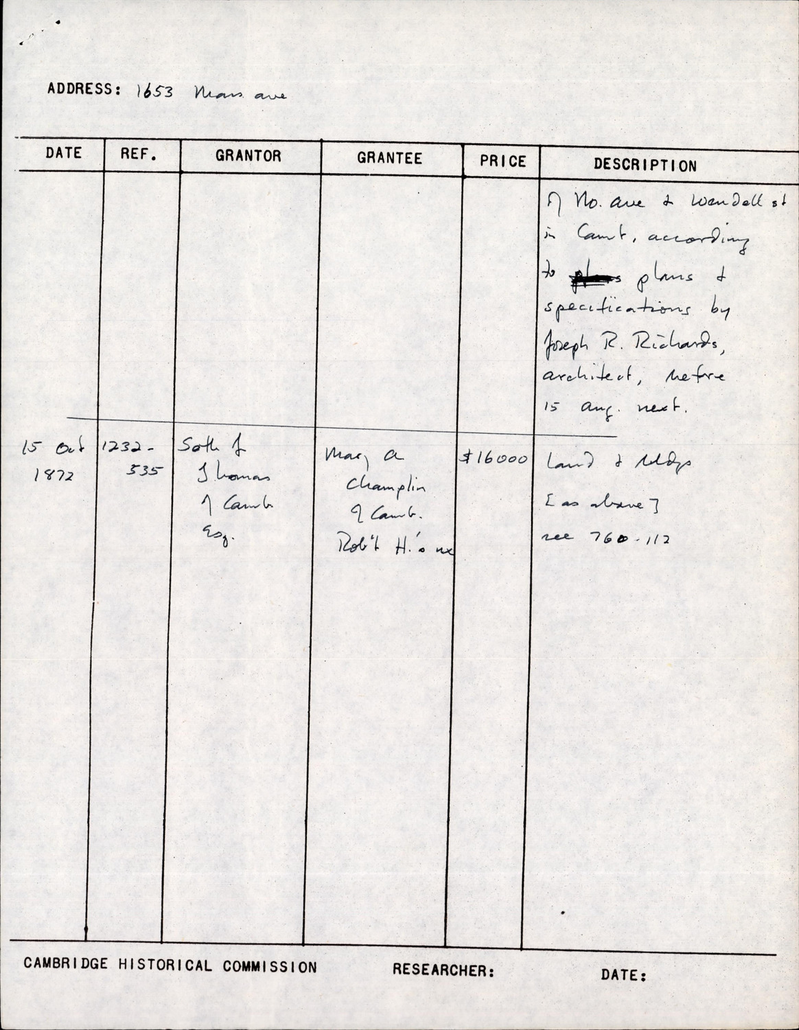 - Cambridge Historical Commission, Digital Architectural Survey and History.