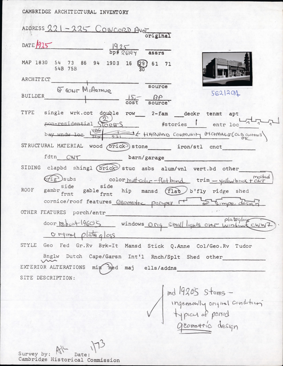221-225 Concord Ave - Architectural Inventory Form