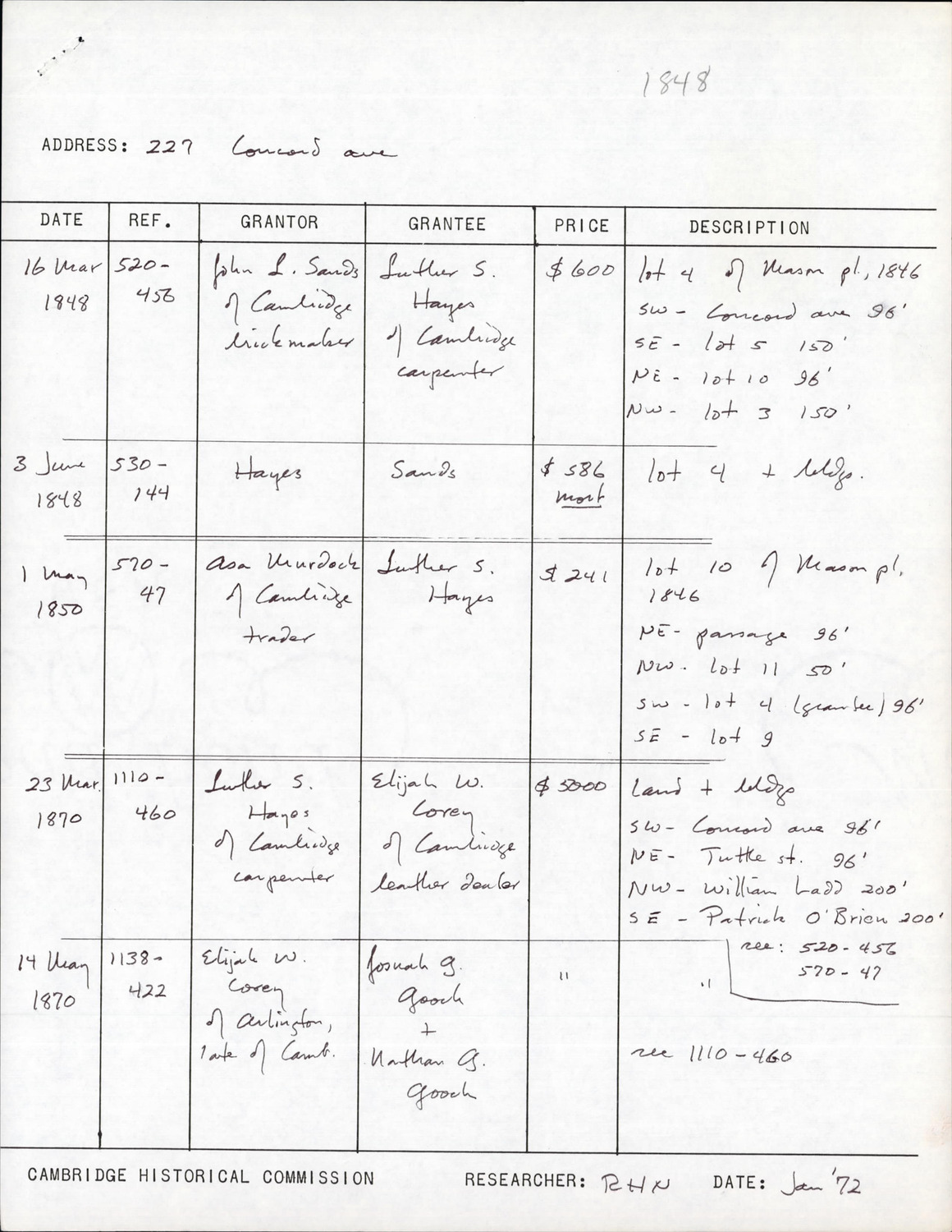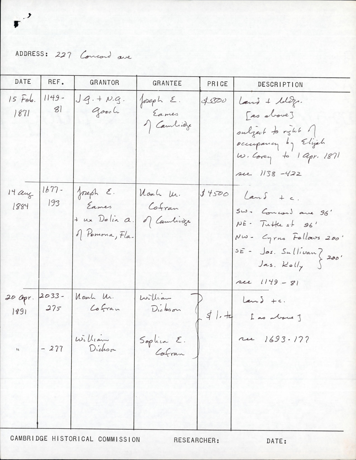 227 Concord Ave - Research Form