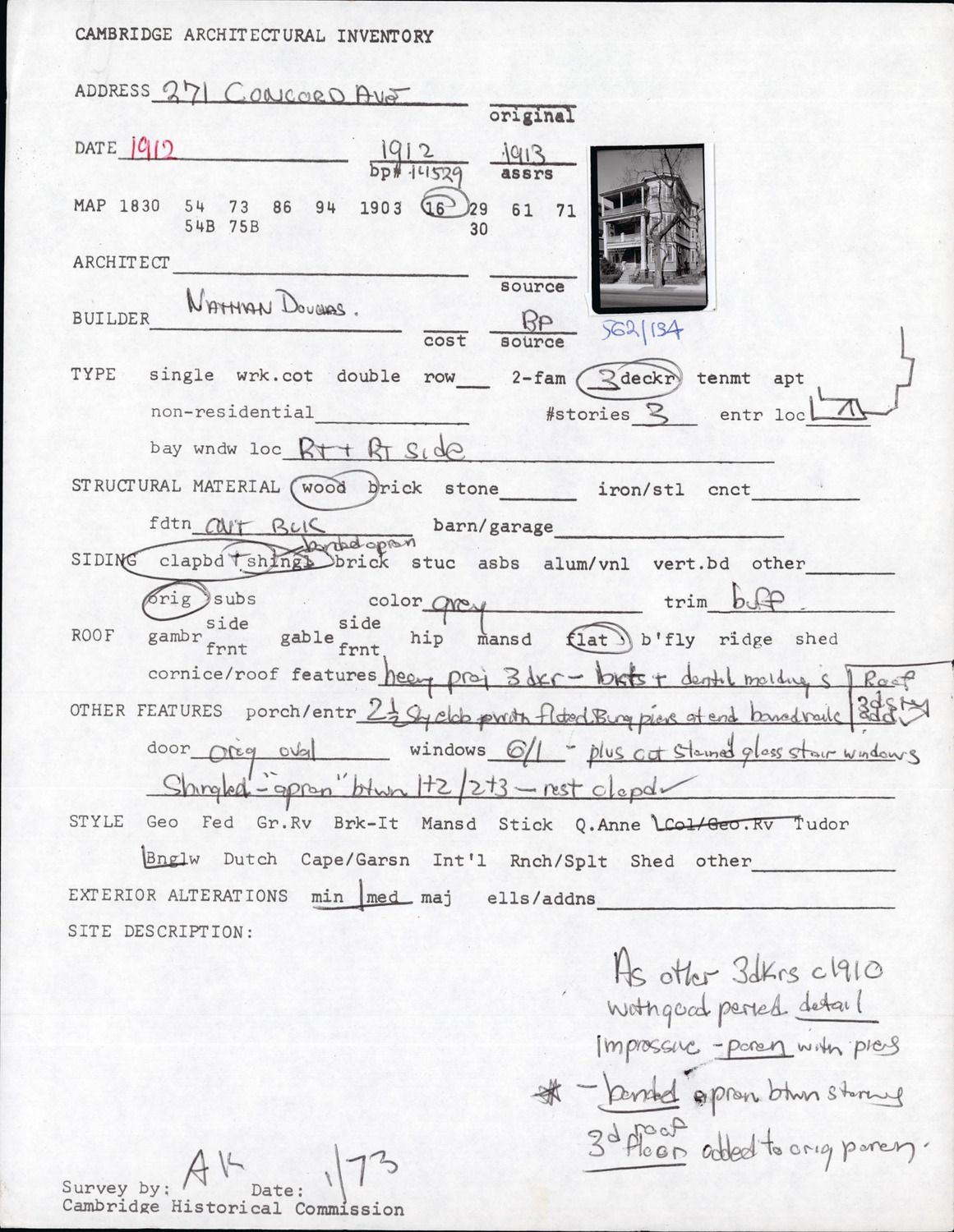 271 Concord Ave - Architectural Inventory Form