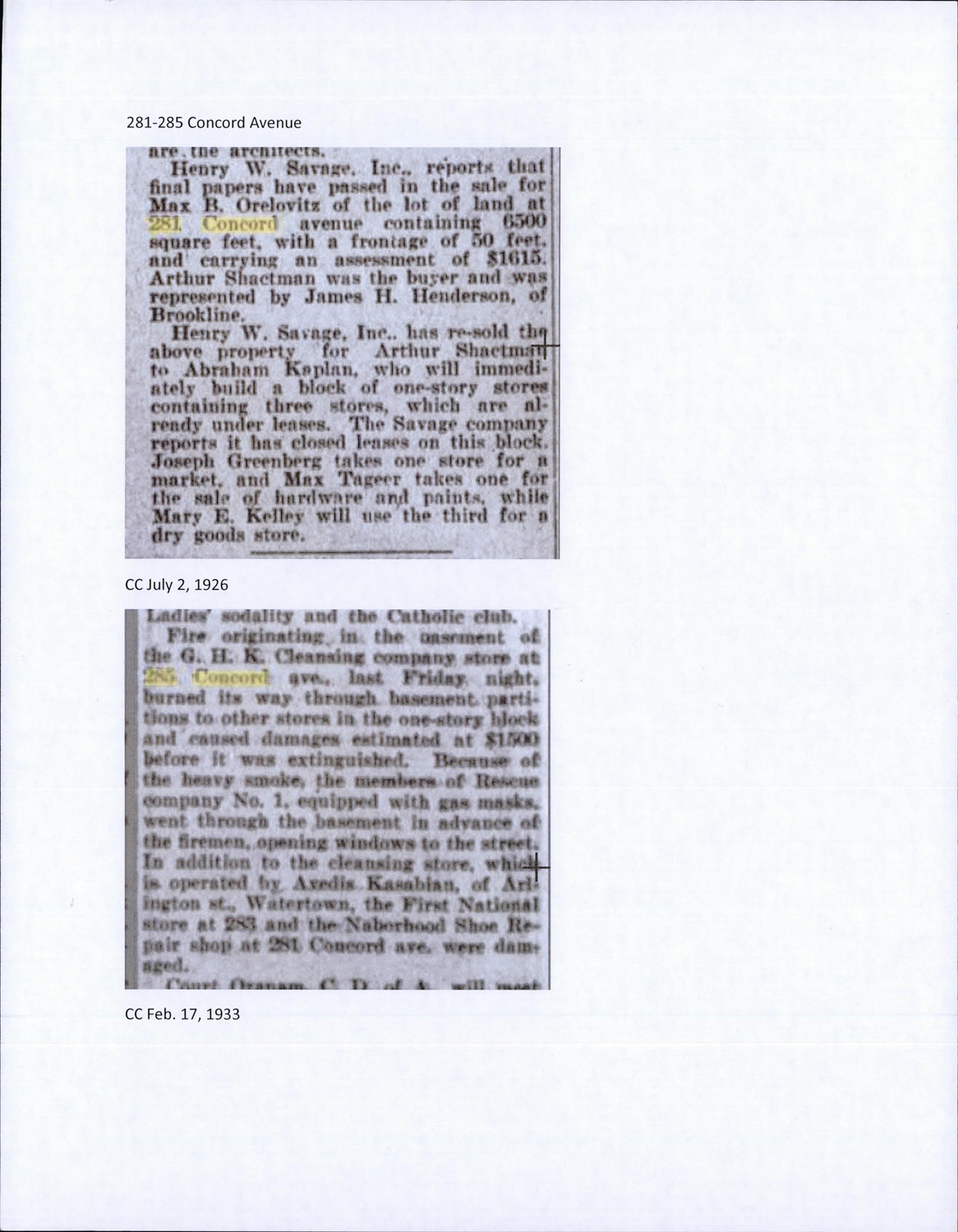 281-285 Concord Ave - Published Material