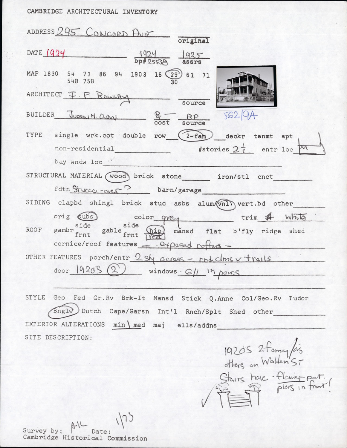 295 Concord Ave - Architectural Inventory Form
