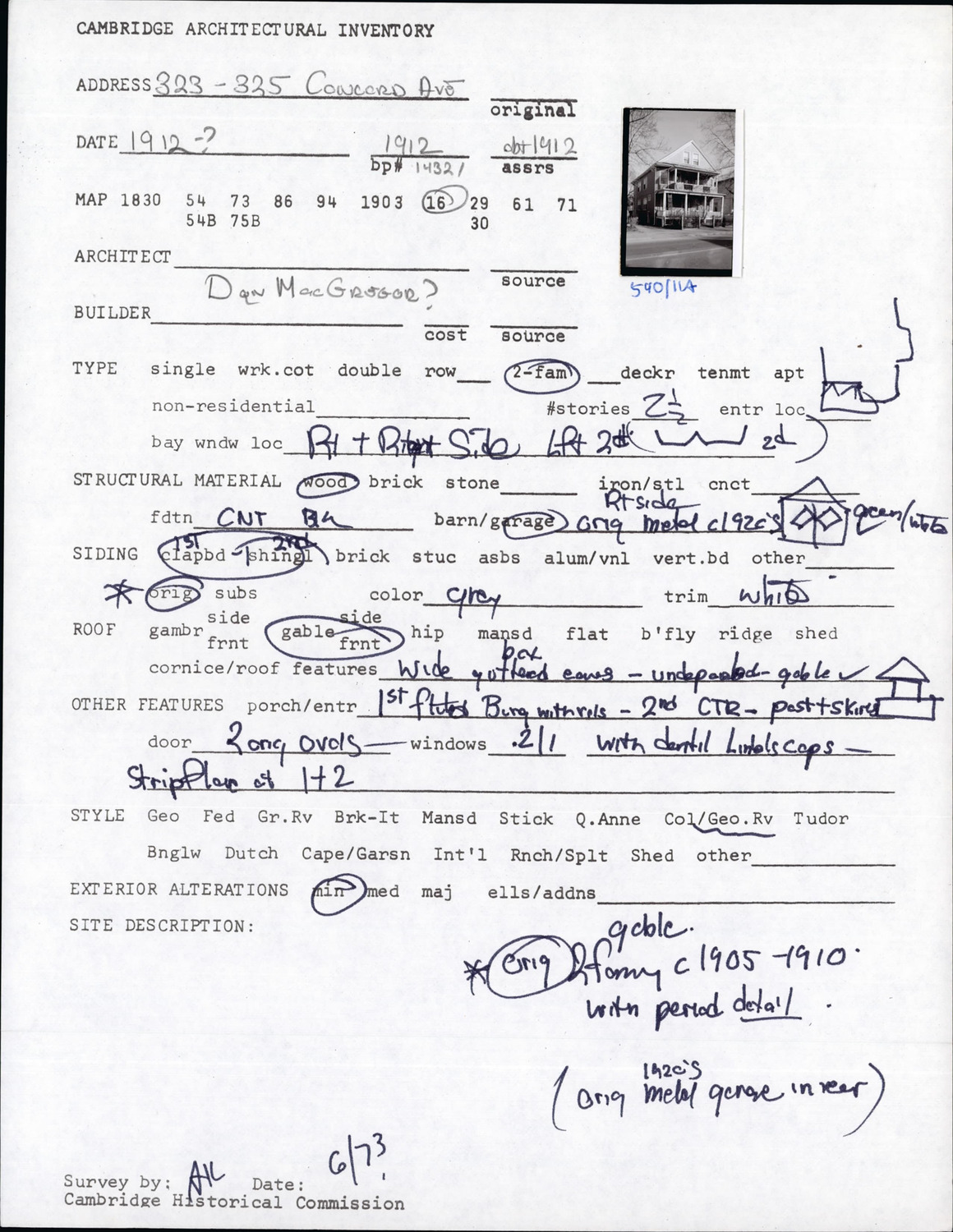 - Cambridge Historical Commission, Digital Architectural Survey and History.