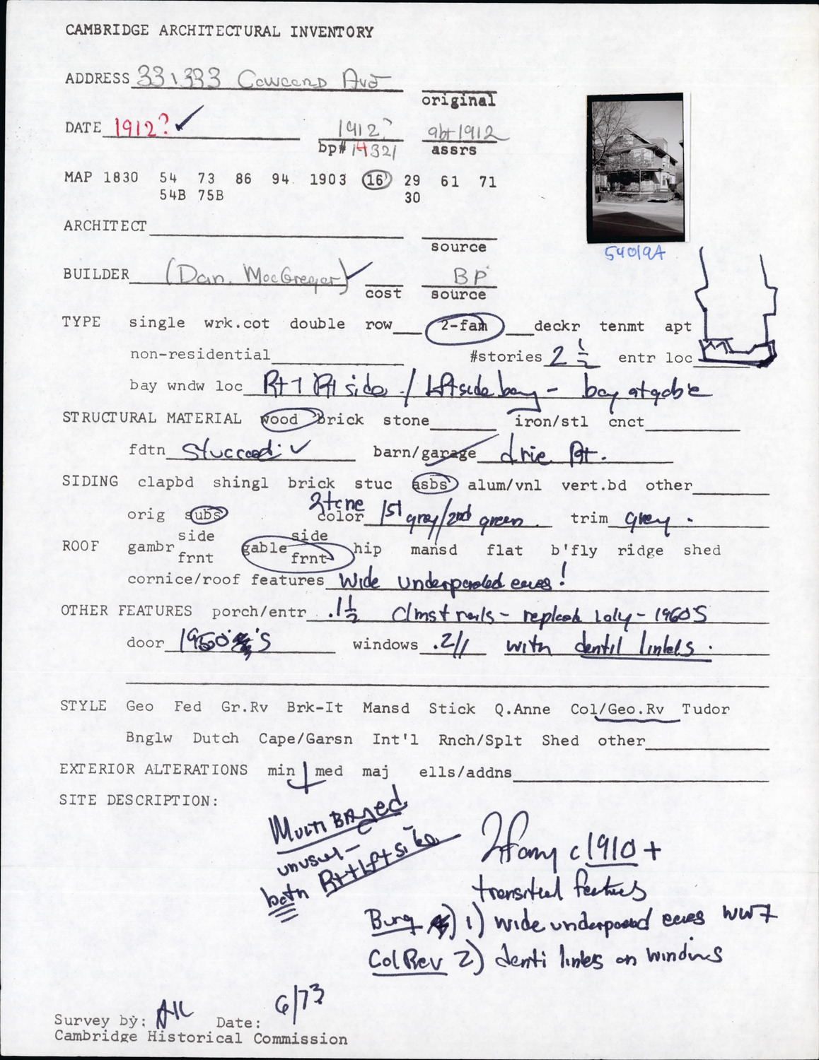 - Cambridge Historical Commission, Digital Architectural Survey and History.