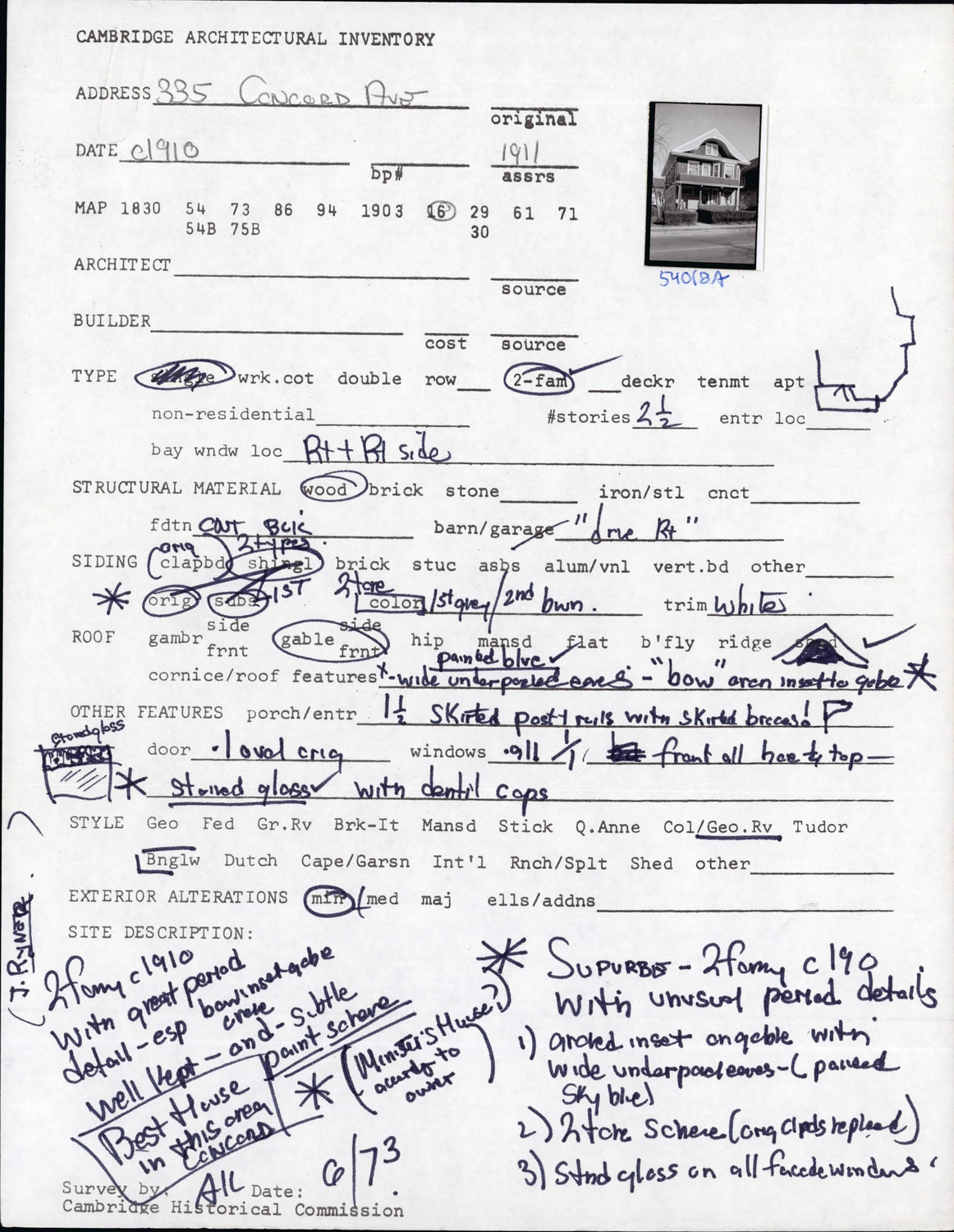 - Cambridge Historical Commission, Digital Architectural Survey and History.