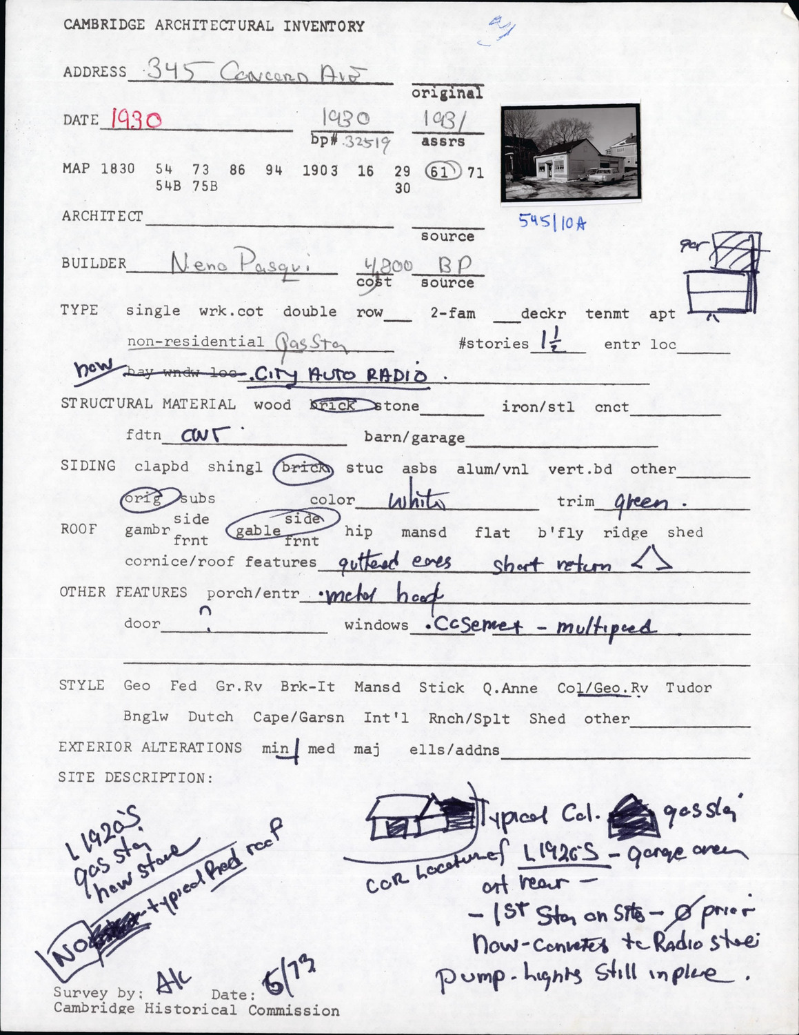 345 Concord Ave - Architectural Inventory Form