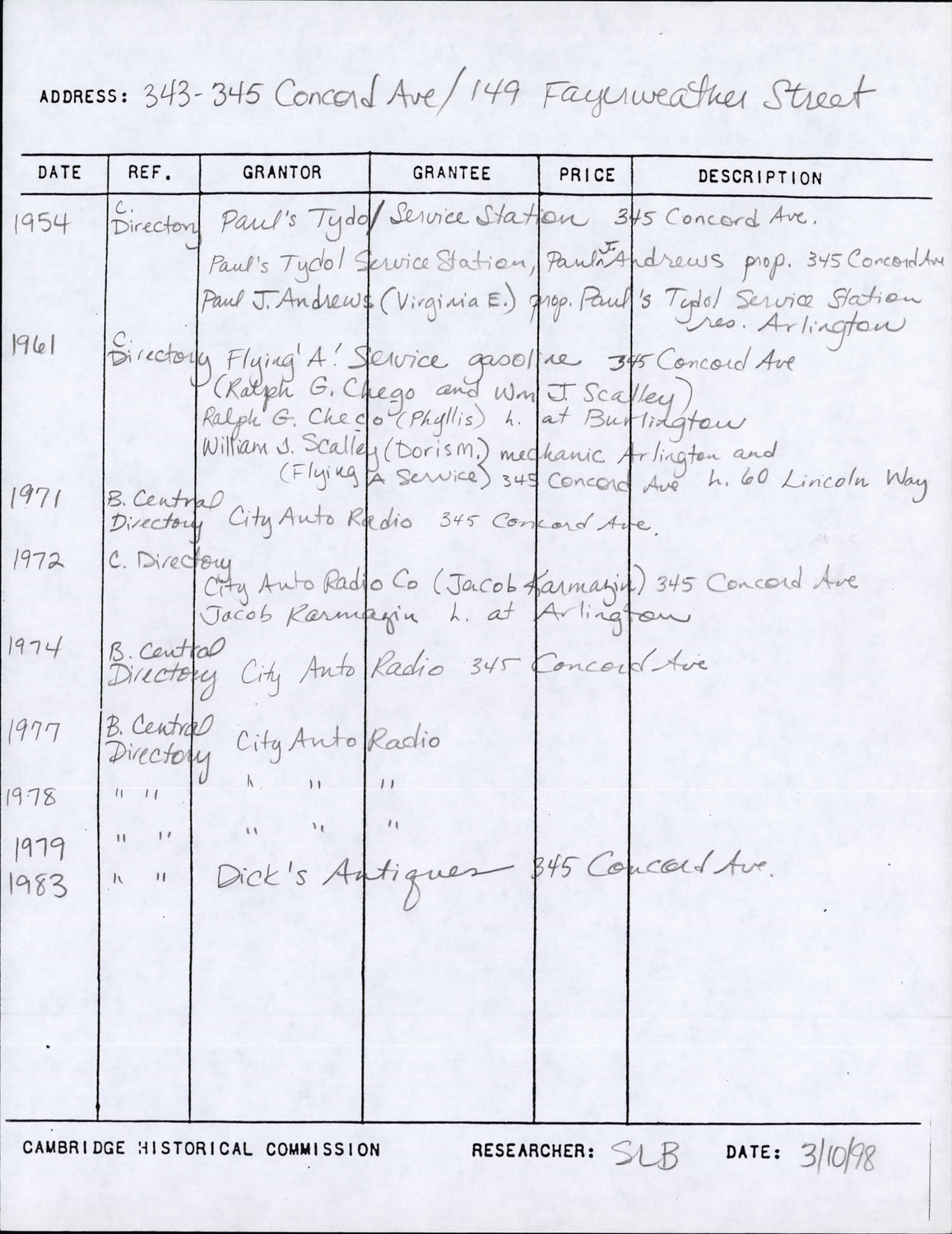 345 Concord Ave - Research Form