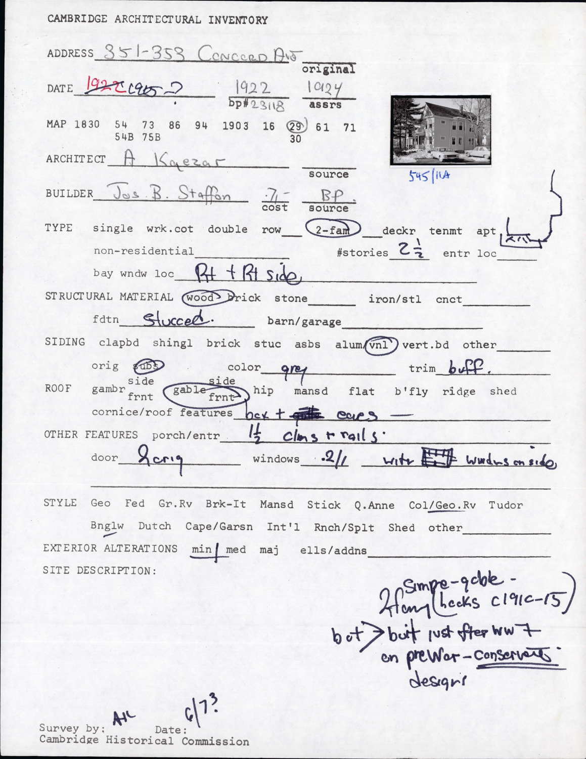 351-353 Concord Ave - Architectural Inventory Form