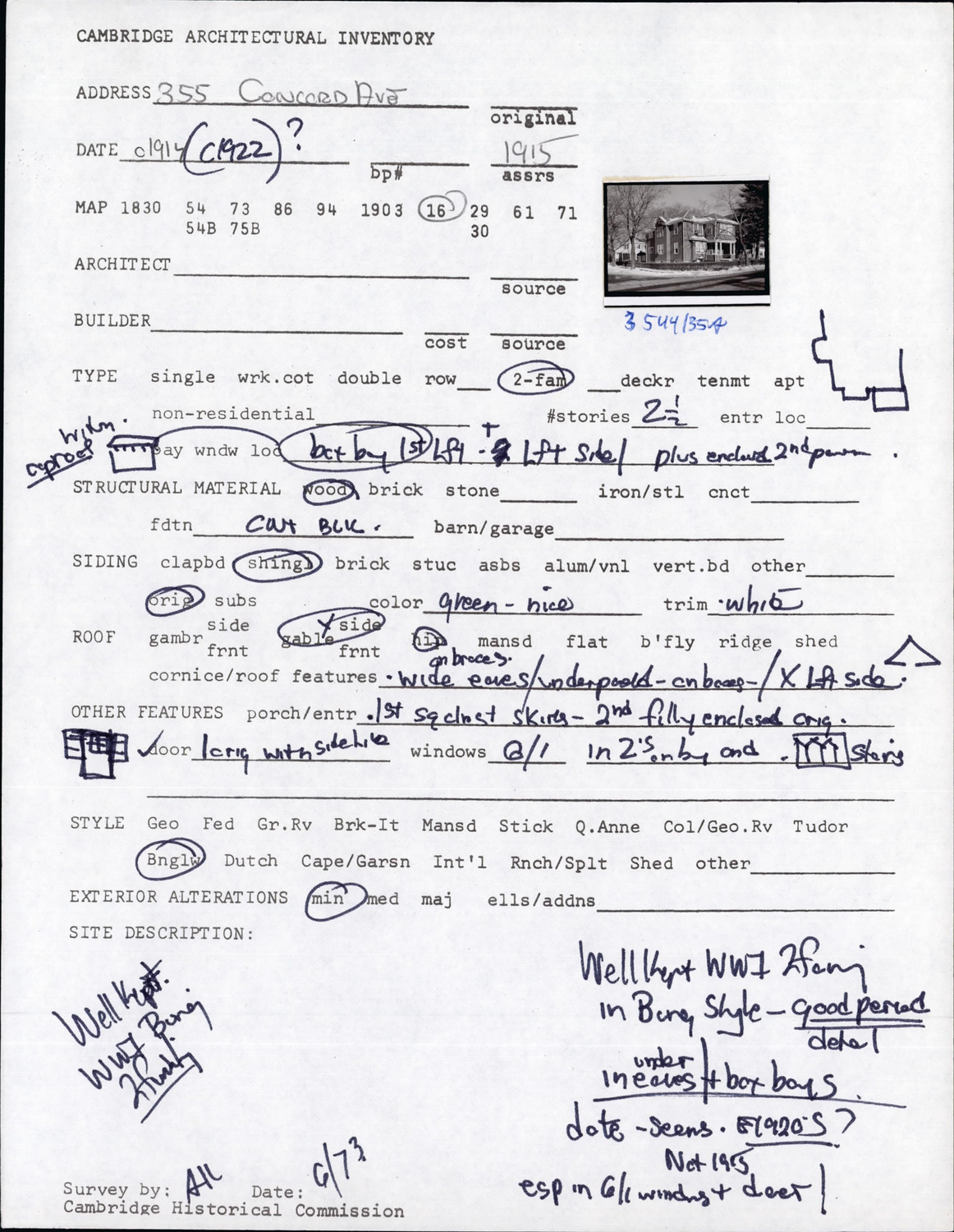 - Cambridge Historical Commission, Digital Architectural Survey and History.