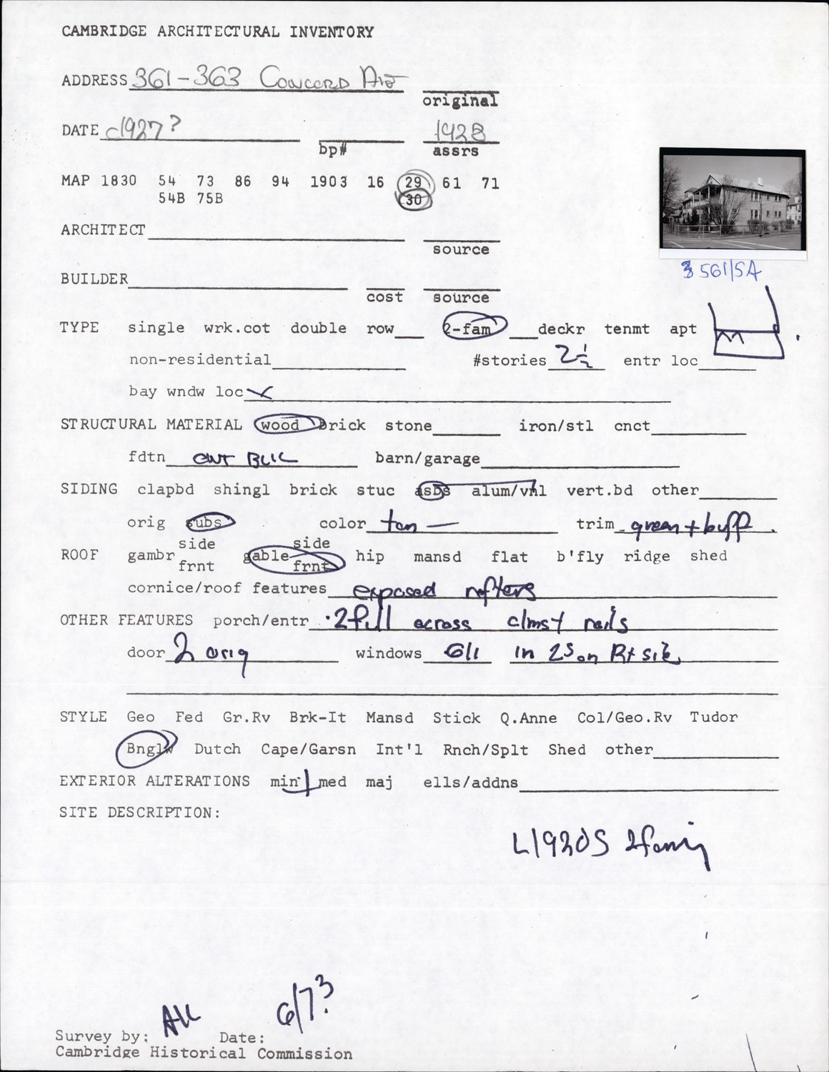 361-363 Concord Ave - Architectural Inventory Form