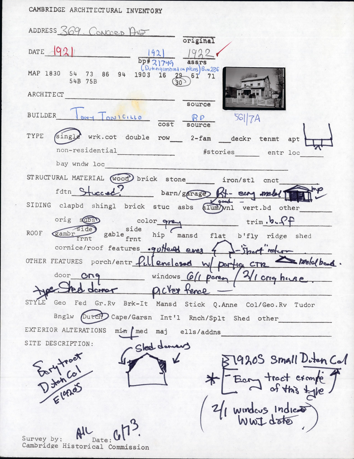 - Cambridge Historical Commission, Digital Architectural Survey and History.