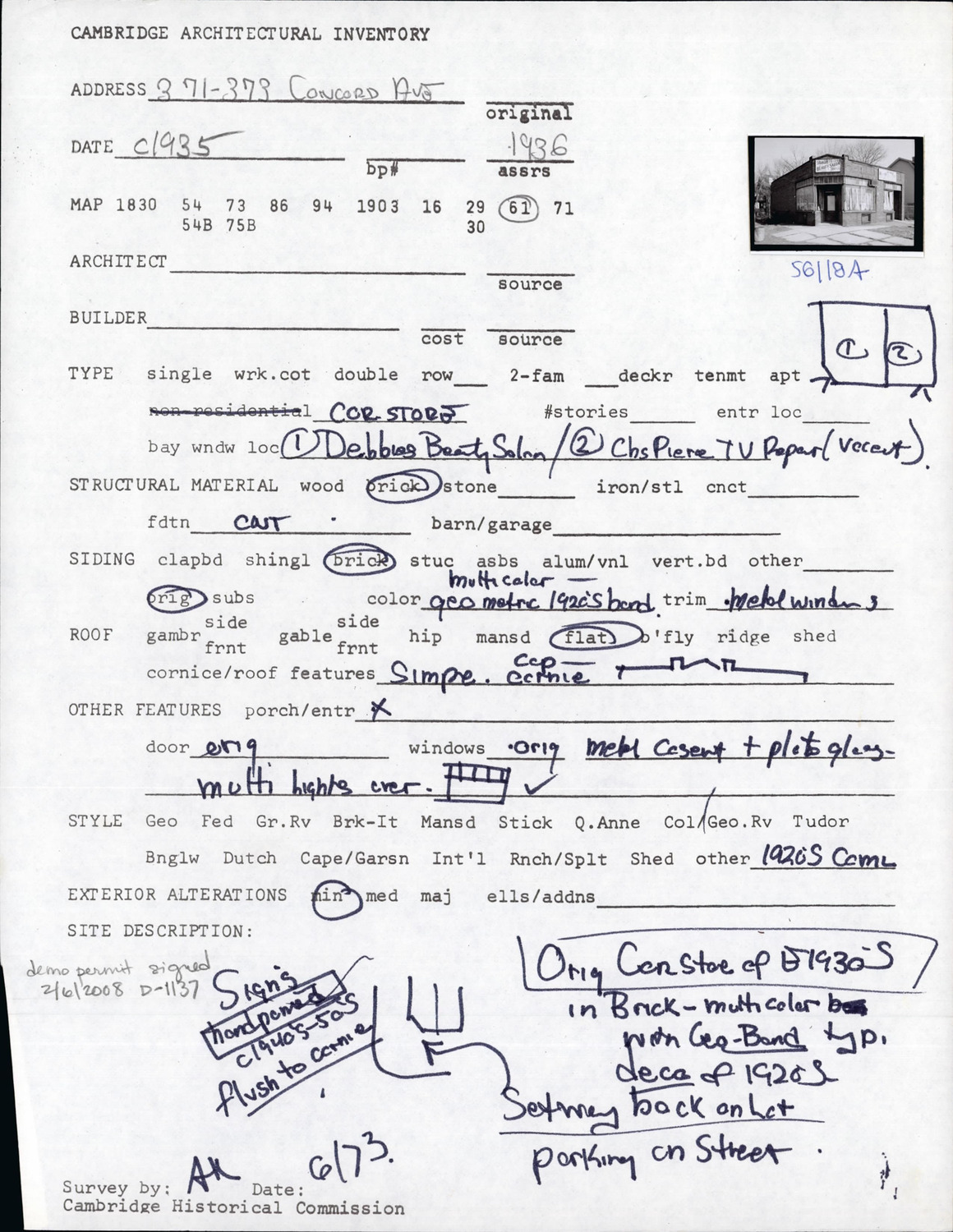 371-373 Concord Ave - Architectural Inventory Form