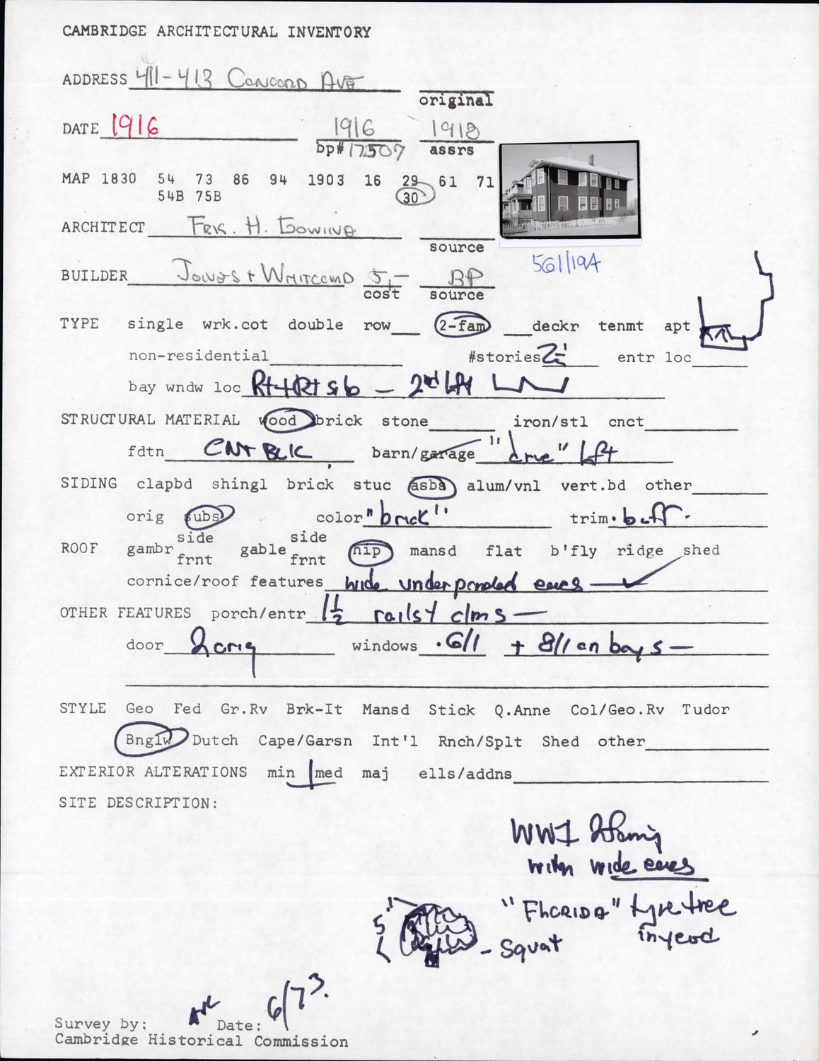 411-413 Concord Ave - Architectural Inventory Form