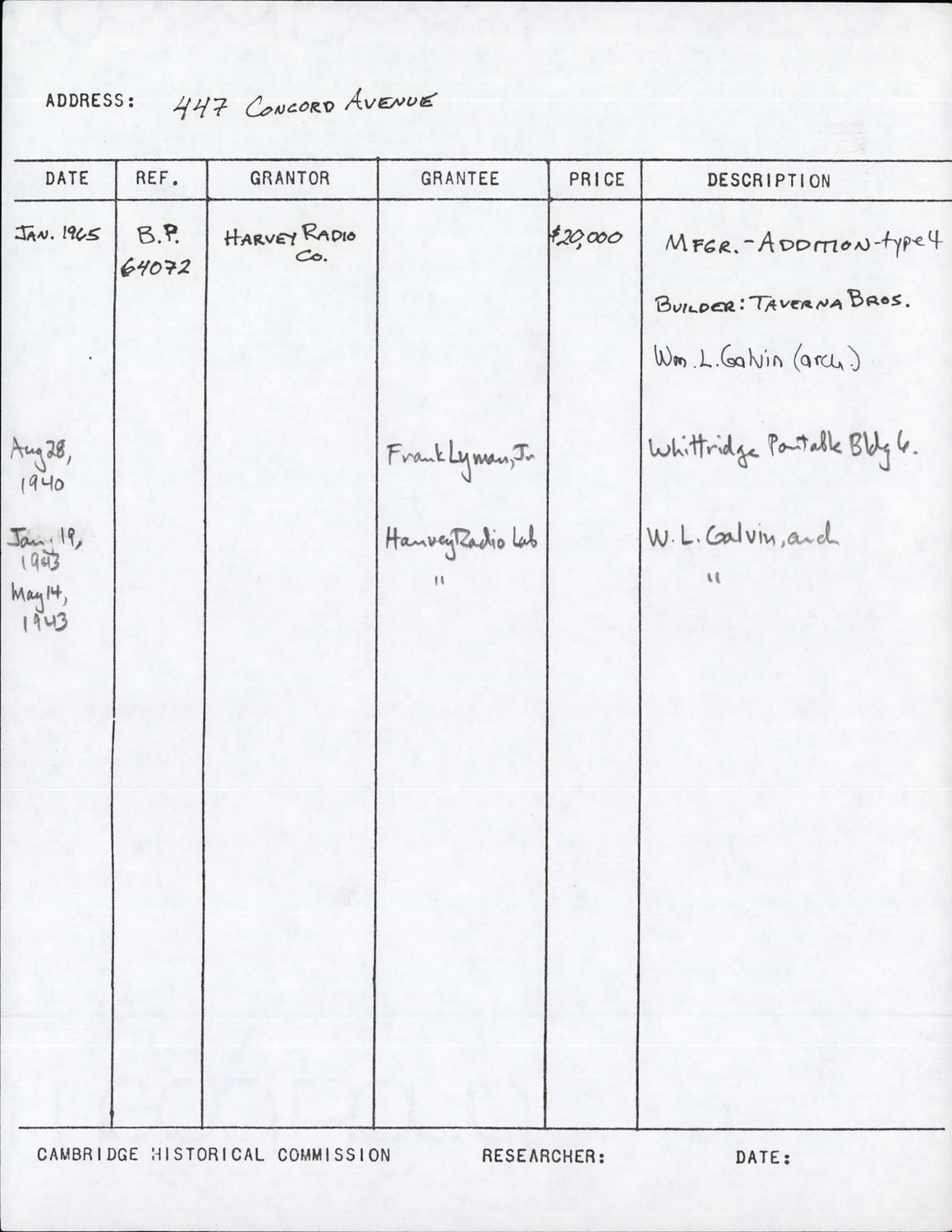 - Cambridge Historical Commission, Digital Architectural Survey and History.