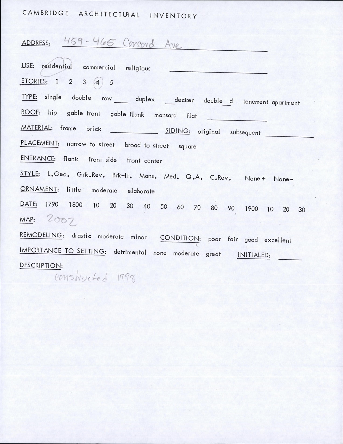 459-465 Concord Ave - Architectural Inventory Form