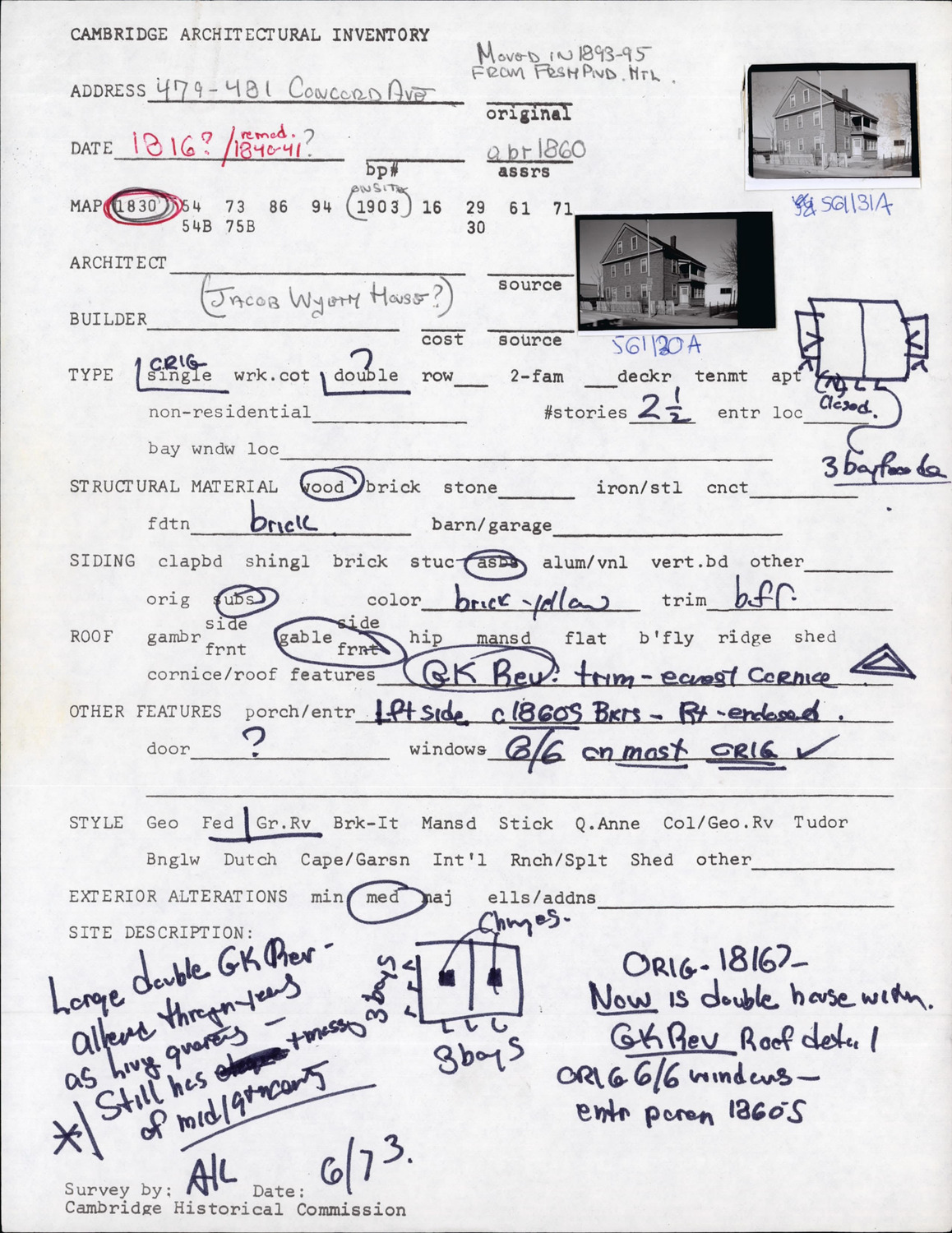 479-481 Concord Ave - Architectural Inventory Form