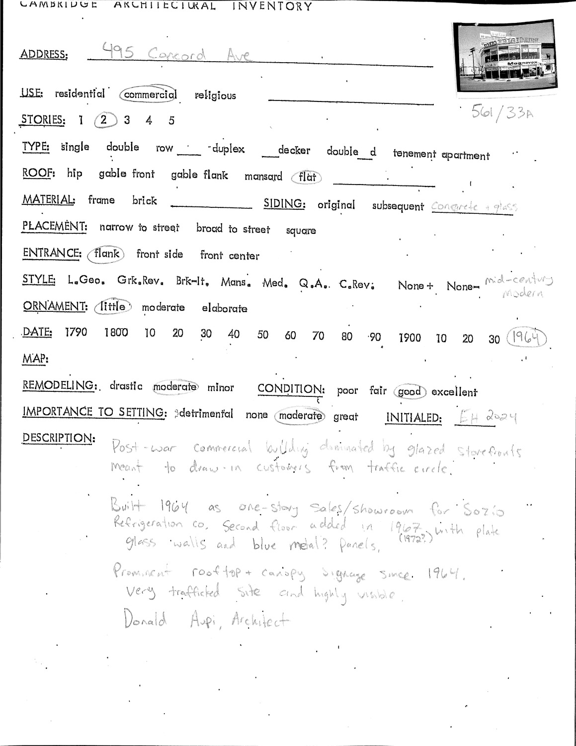 495 Concord Ave - Architectural Inventory Form