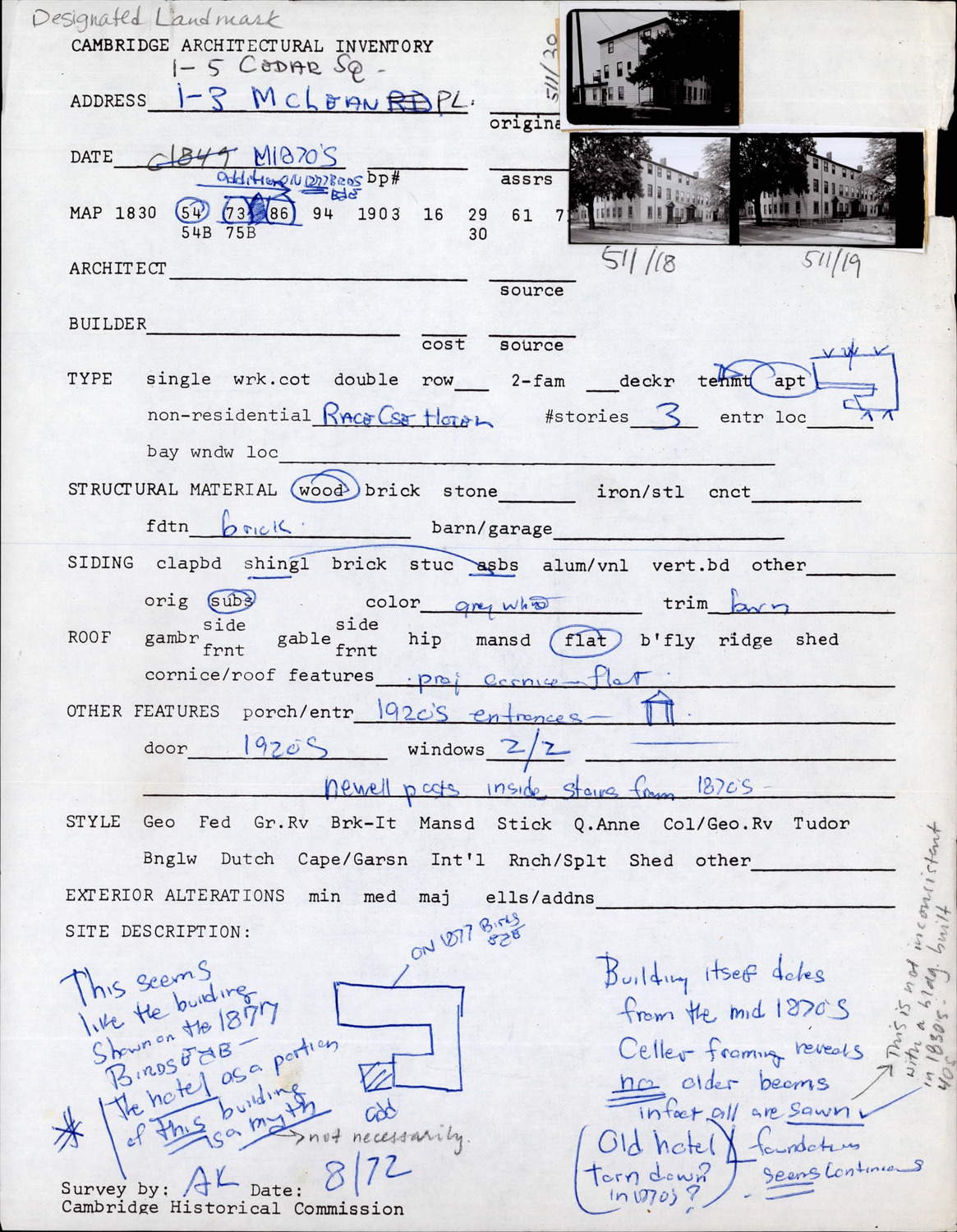 1-5 Cedar Sq - Cedar Square Race Course Hotel - Architectural Inventory Form
