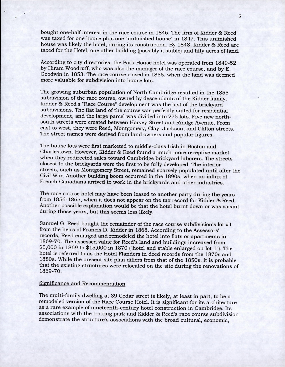 37-39 Cedar St - Cedar Square Race Course Hotel - Supplemental Material