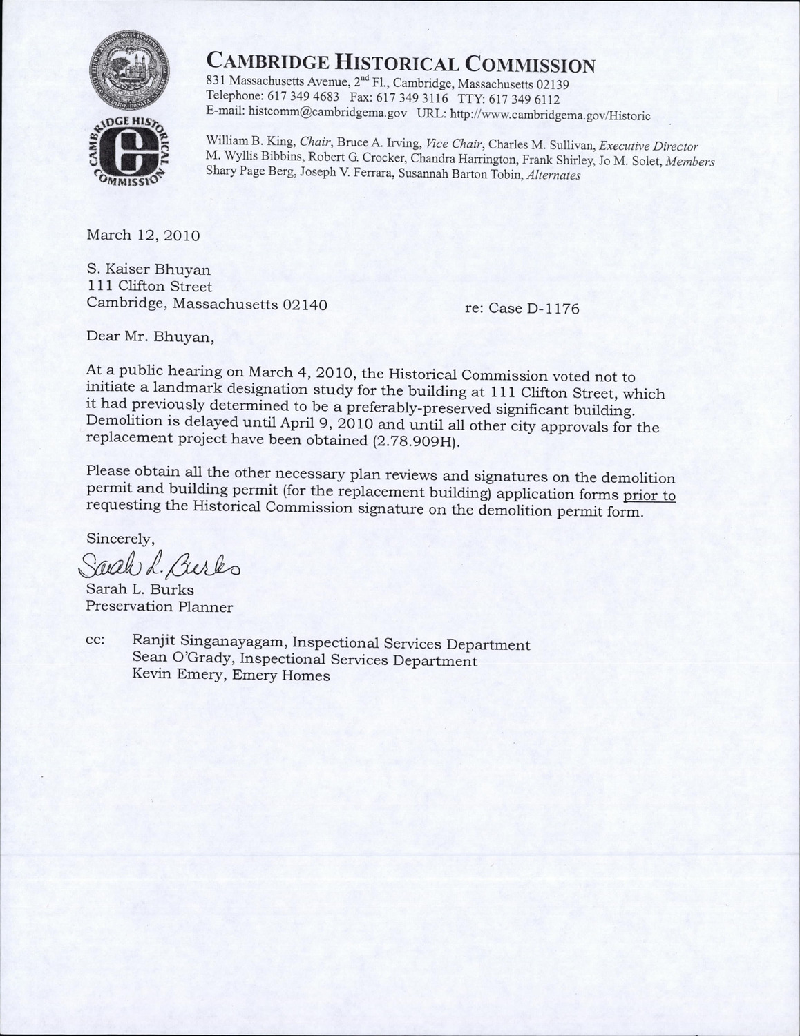 111 Clifton St - Correspondence