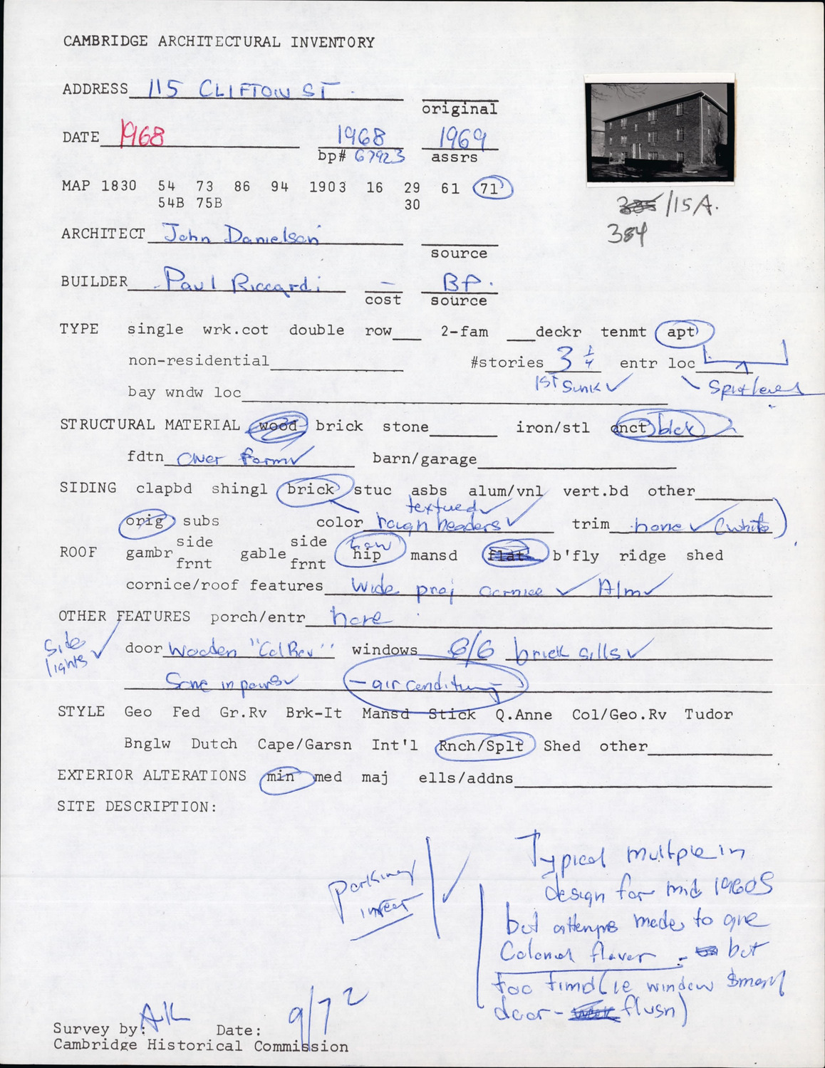 115 Clifton St - Architectural Inventory Form