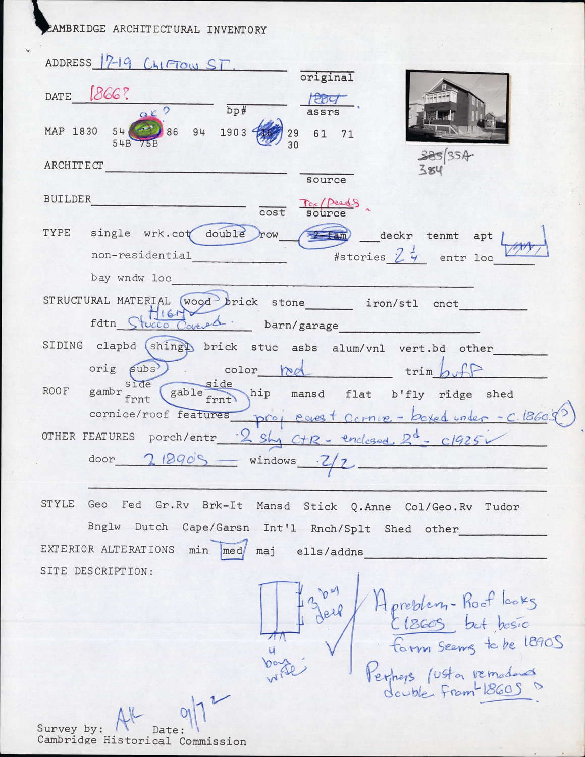 17-19 Clifton St - Architectural Inventory Form