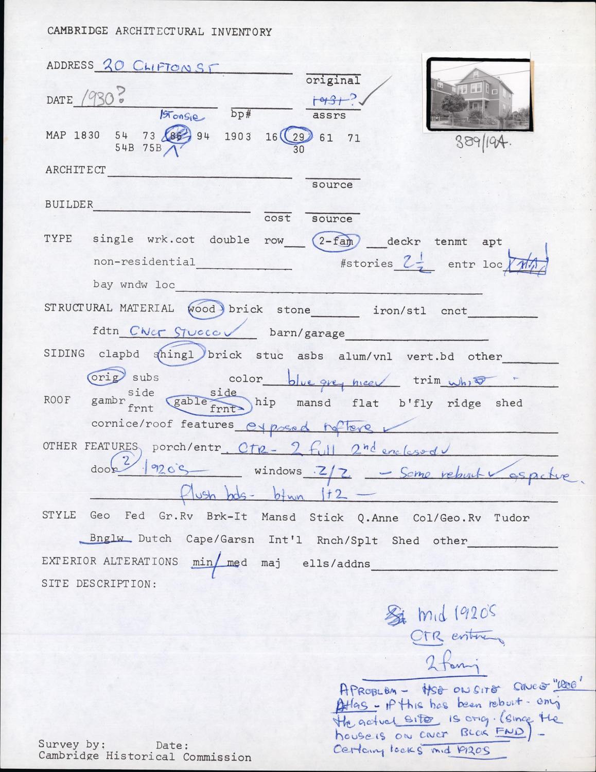 - Cambridge Historical Commission, Digital Architectural Survey and History.