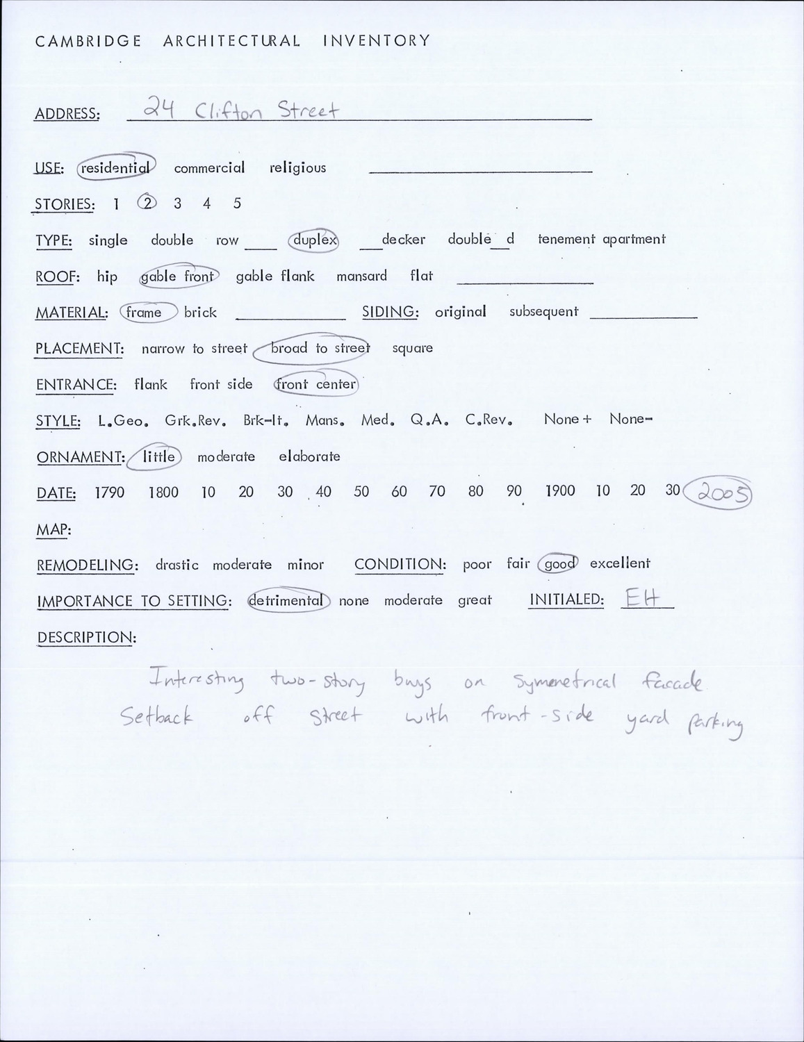 24 Clifton St - Architectural Inventory Form