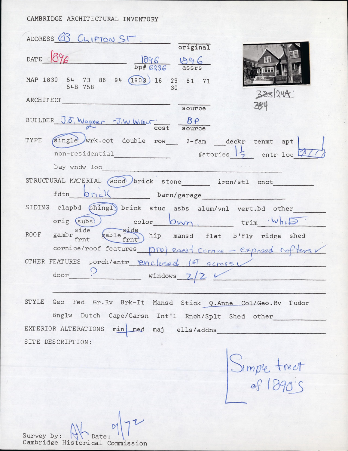 63 Clifton St - Architectural Inventory Form