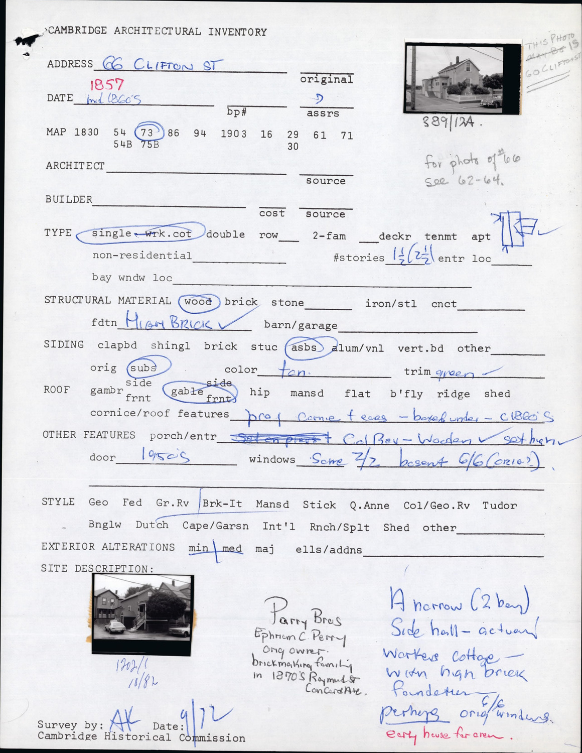 66 Clifton St - Architectural Inventory Form