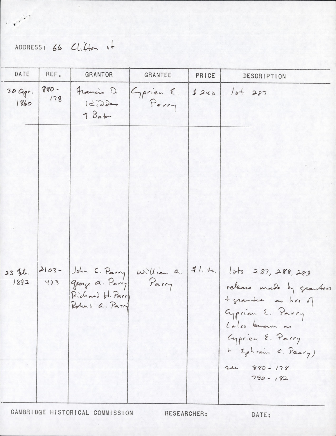 66 Clifton St - Research Form