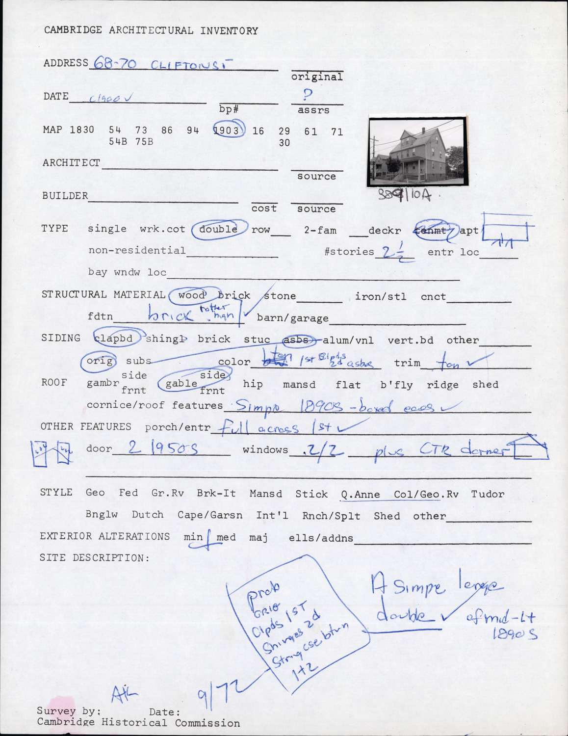 68-70 Clifton St - Architectural Inventory Form