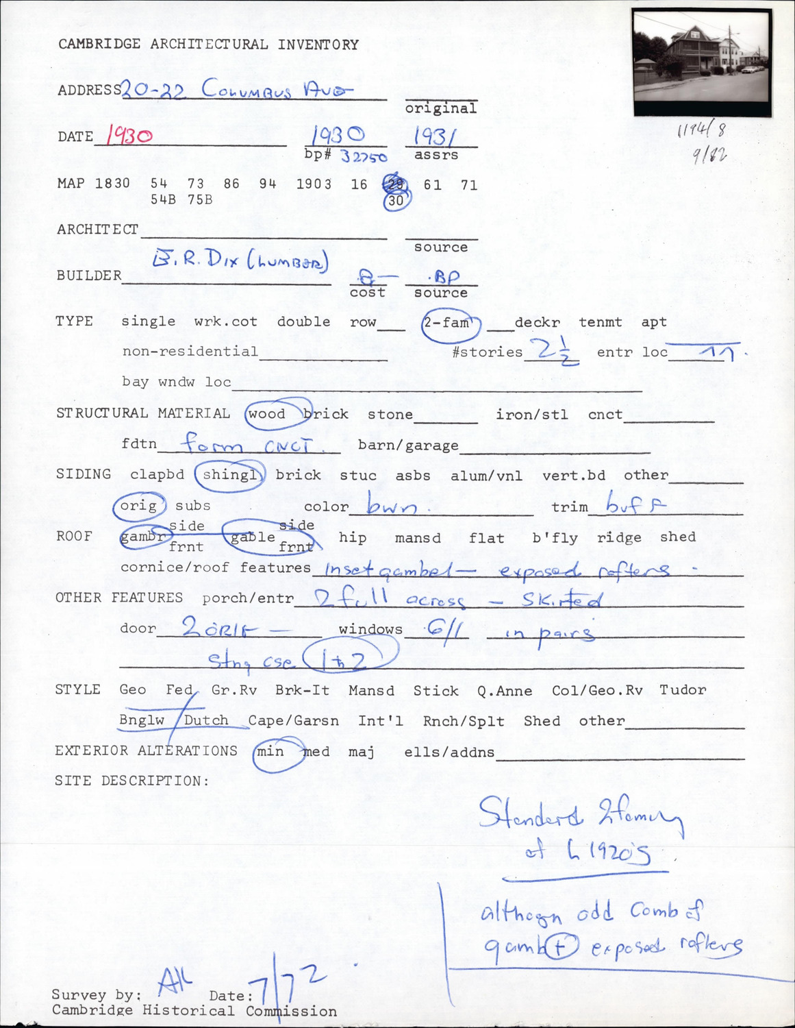 - Cambridge Historical Commission, Digital Architectural Survey and History.