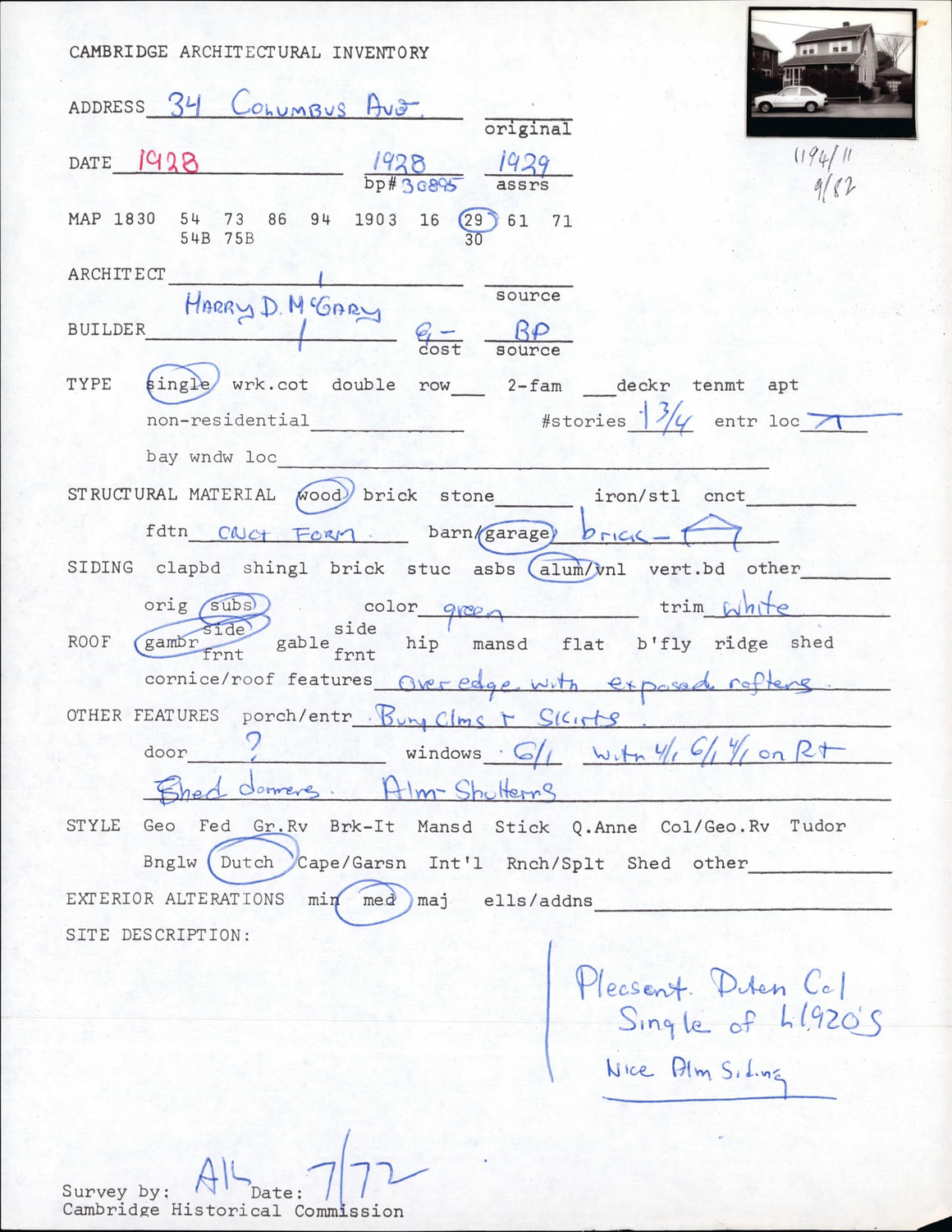 34 Columbus Ave - Architectural Inventory Form