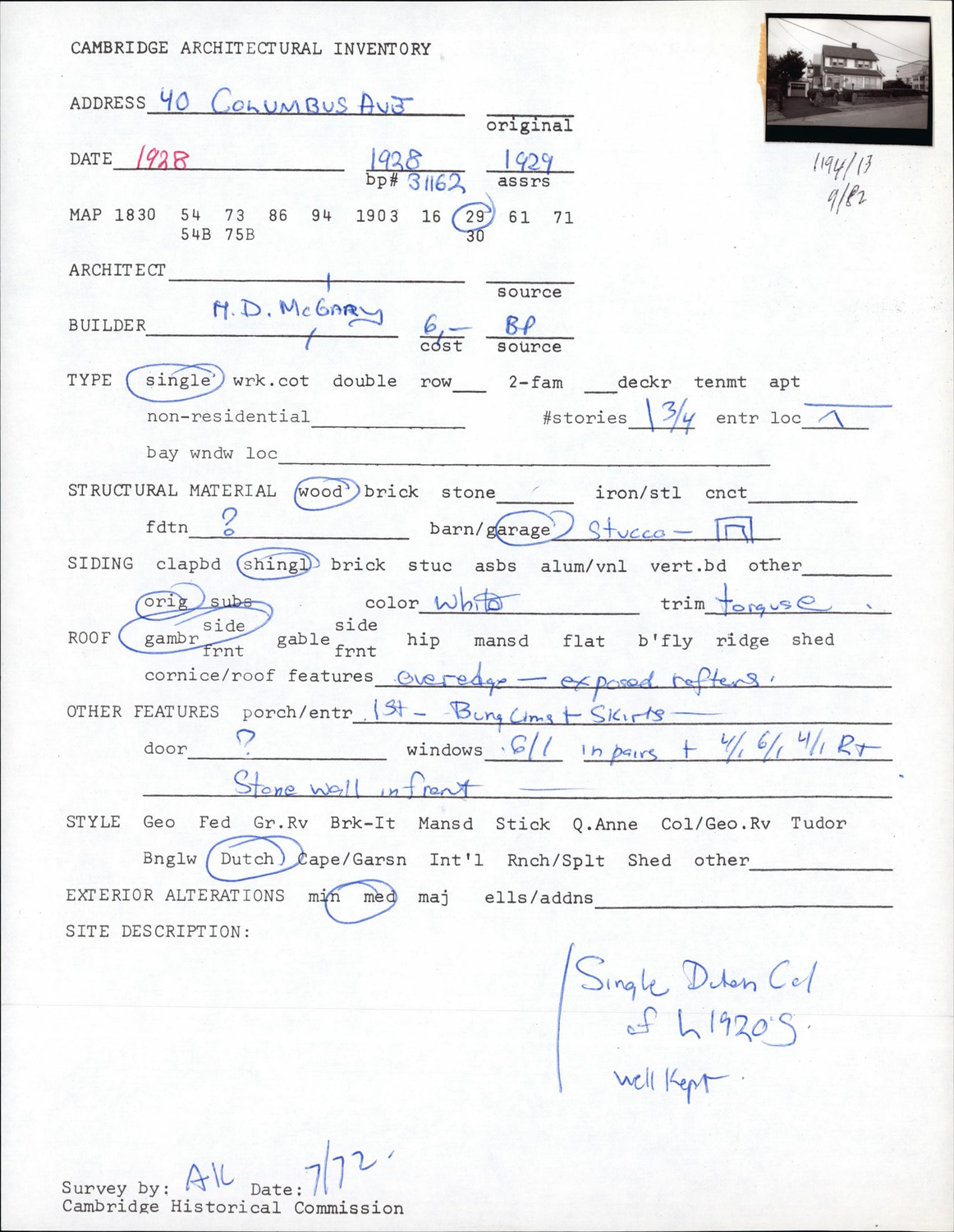 40 Columbus Ave - Architectural Inventory Form