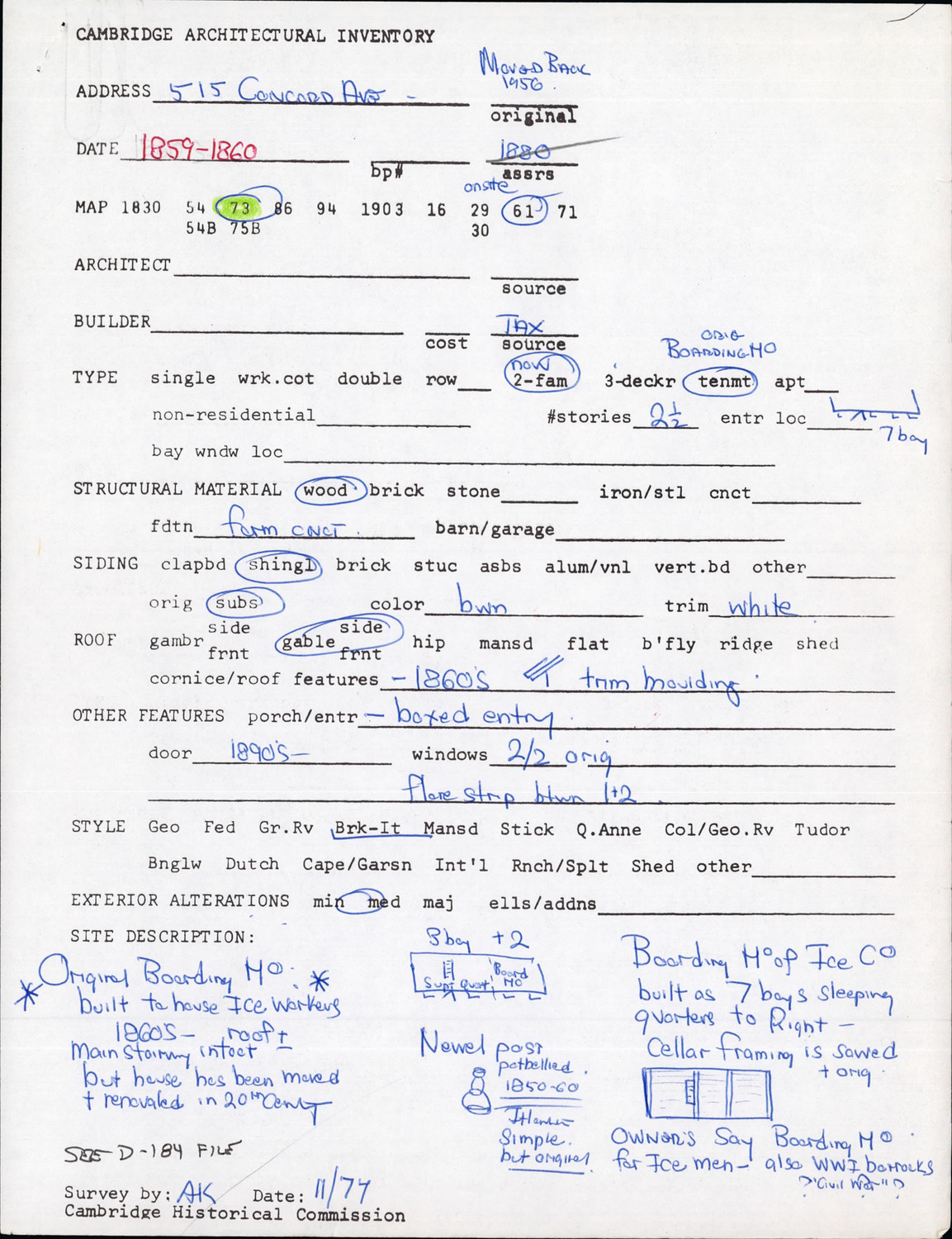 515R Concord Ave - Architectural Inventory Form