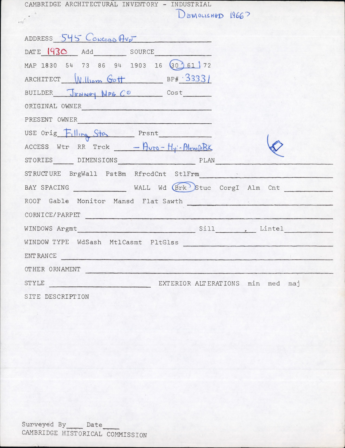 545 Concord Ave - Architectural Inventory Form