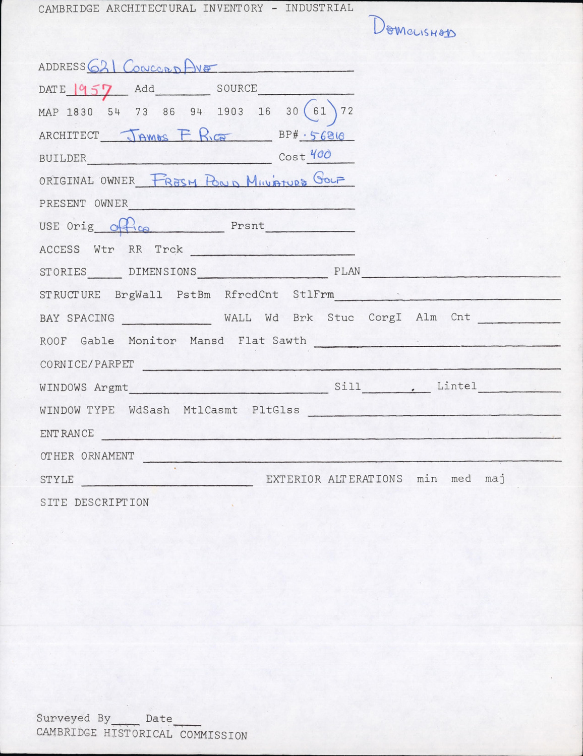 621 Concord Ave - Architectural Inventory Form