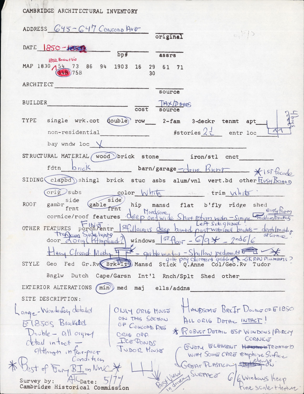 645-647 Concord Ave - Architectural Inventory Form