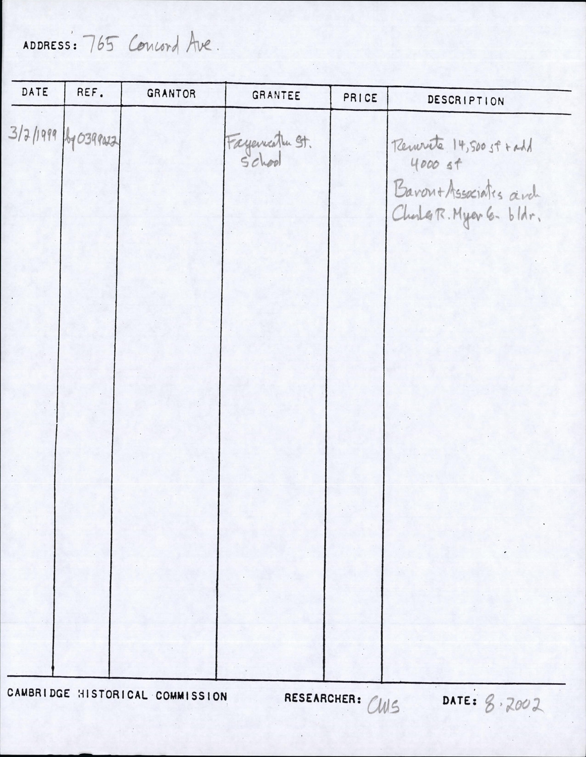 765A Concord Ave - Research Form