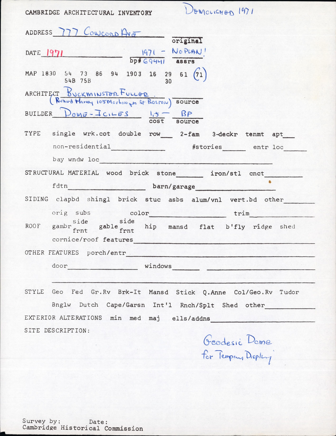 777 Concord Ave - Architectural Inventory Form
