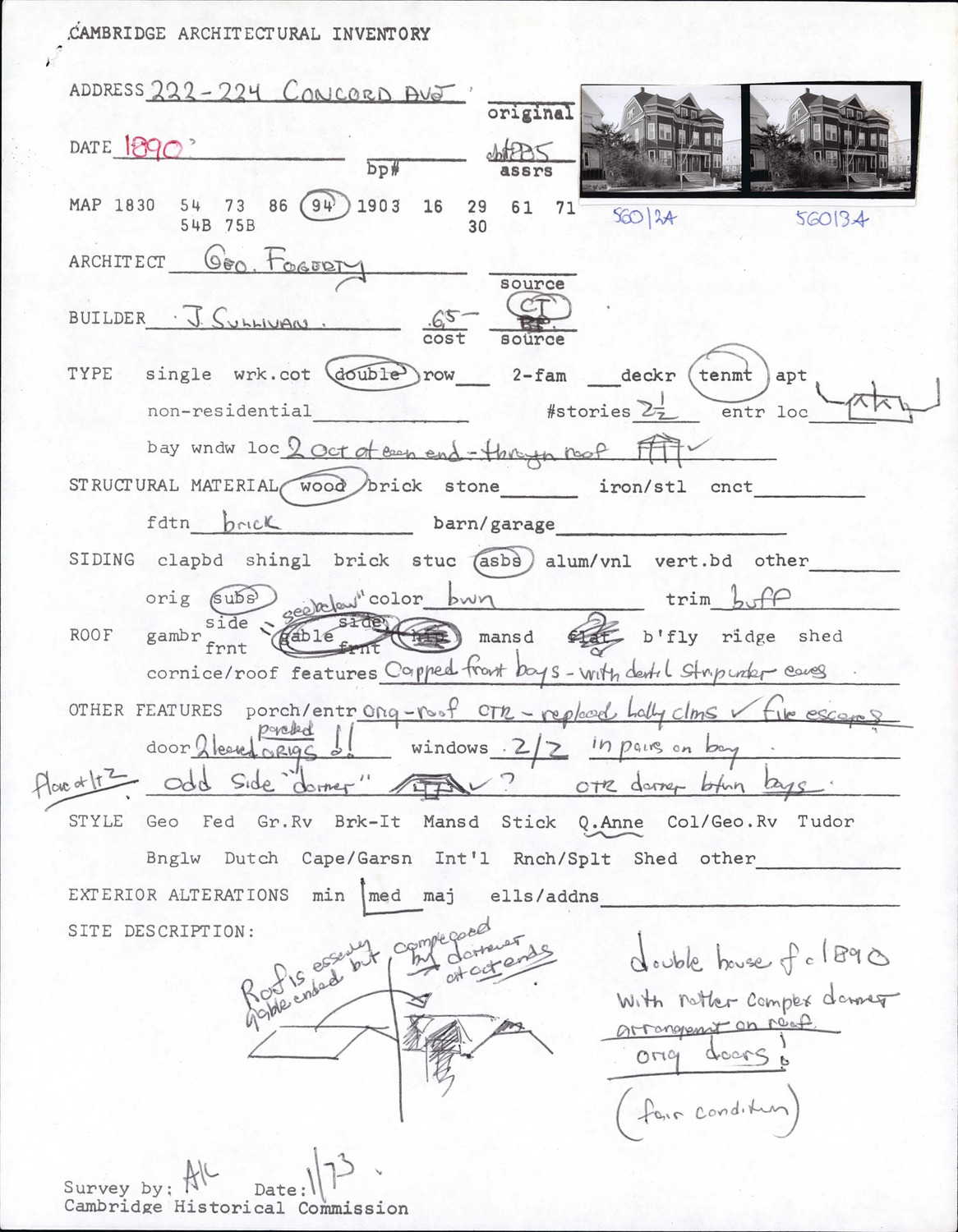 222-224 Concord Ave - Architectural Inventory Form