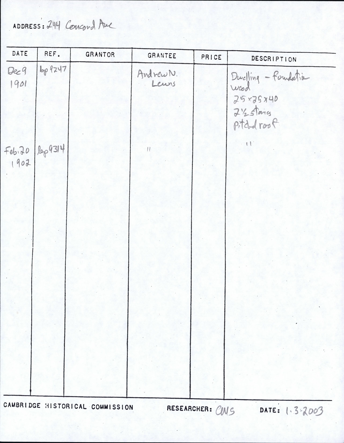 244 Concord Ave - Research Form